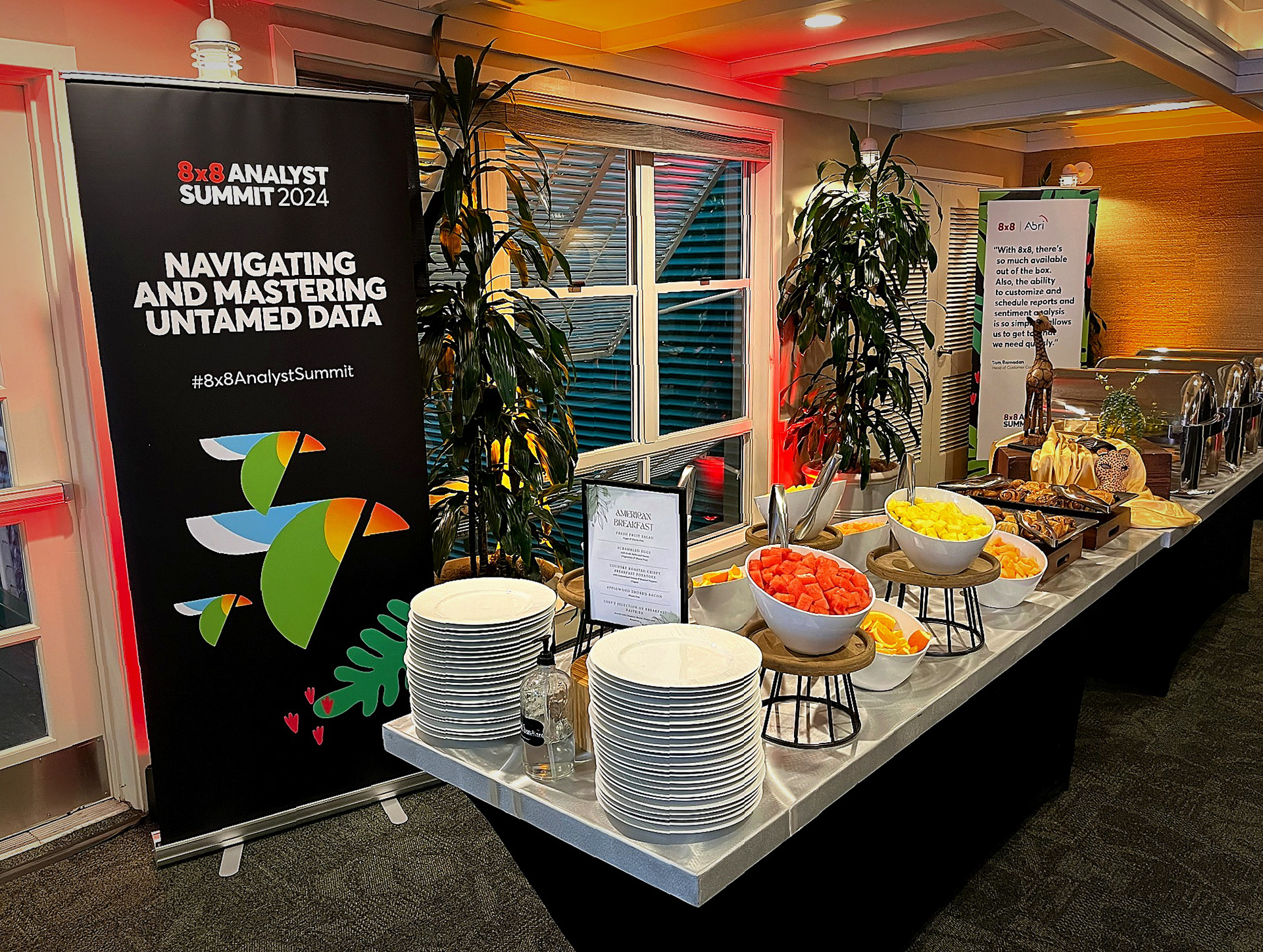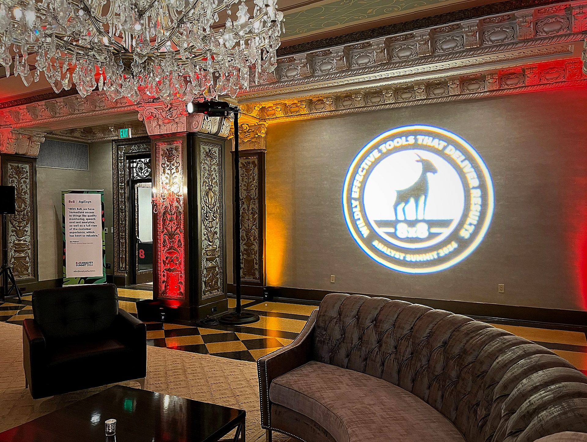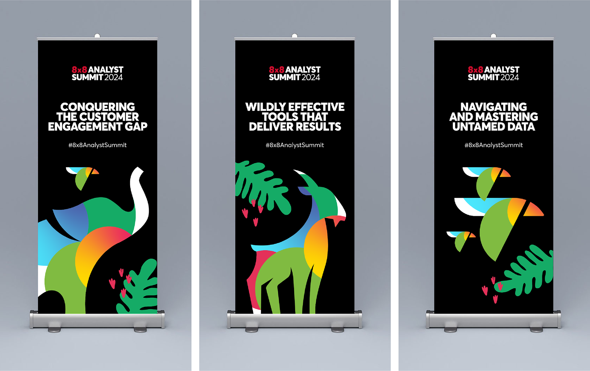 The 8x8 Analyst Summit 2024, held at both the US Grant Hotel and the San Diego Zoo, brought analysts, executives, and customers together for a full day of insights and brand storytelling. I led creative direction, design, and production across both venues, developing the event logo, keynote visuals, presentations, signage, swag, environmental graphics, and animated assets that blended 8x8’s brand with subtle animal-inspired elements. The adaptable visual system performed seamlessly in two very different environments, creating a cohesive, memorable experience that reinforced 8x8’s innovation and customer-first focus.