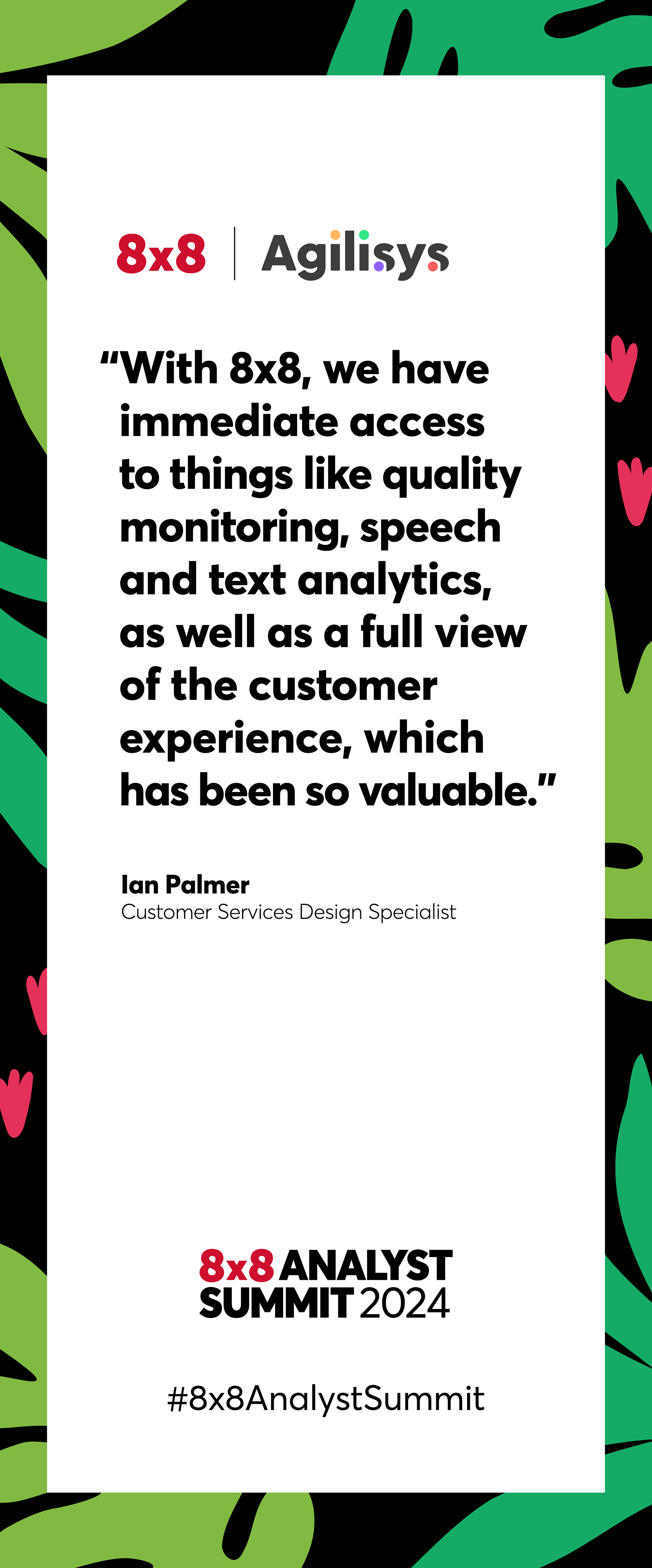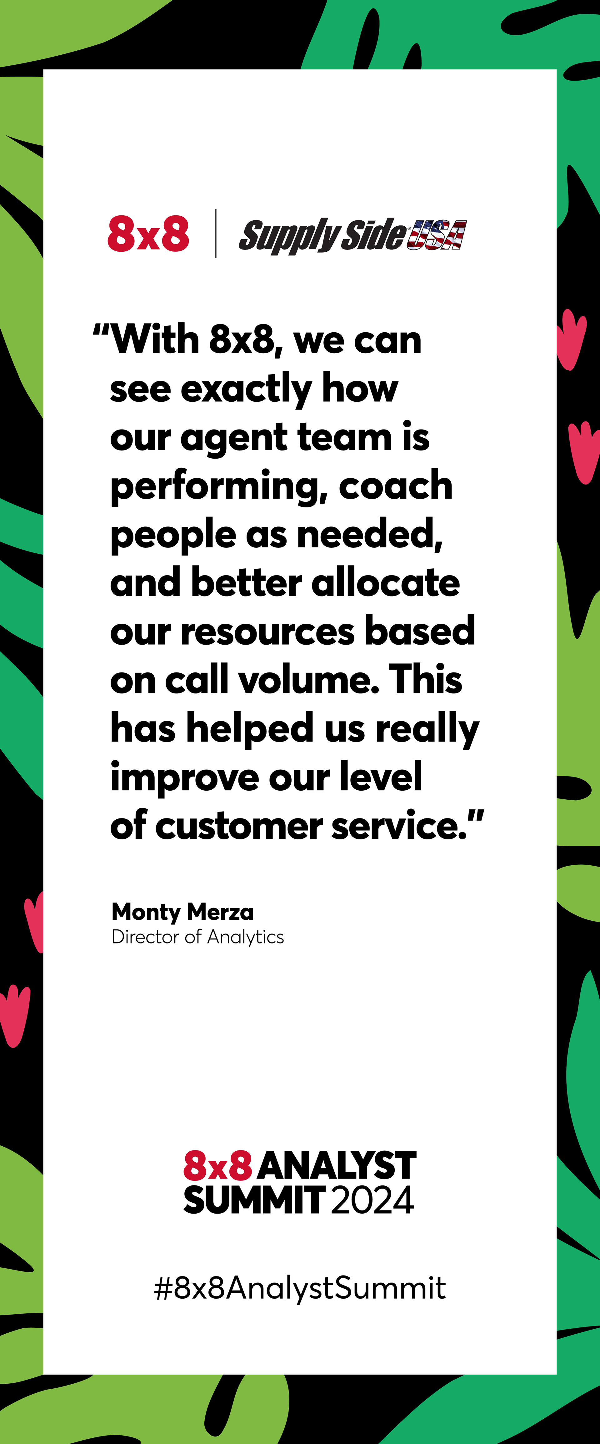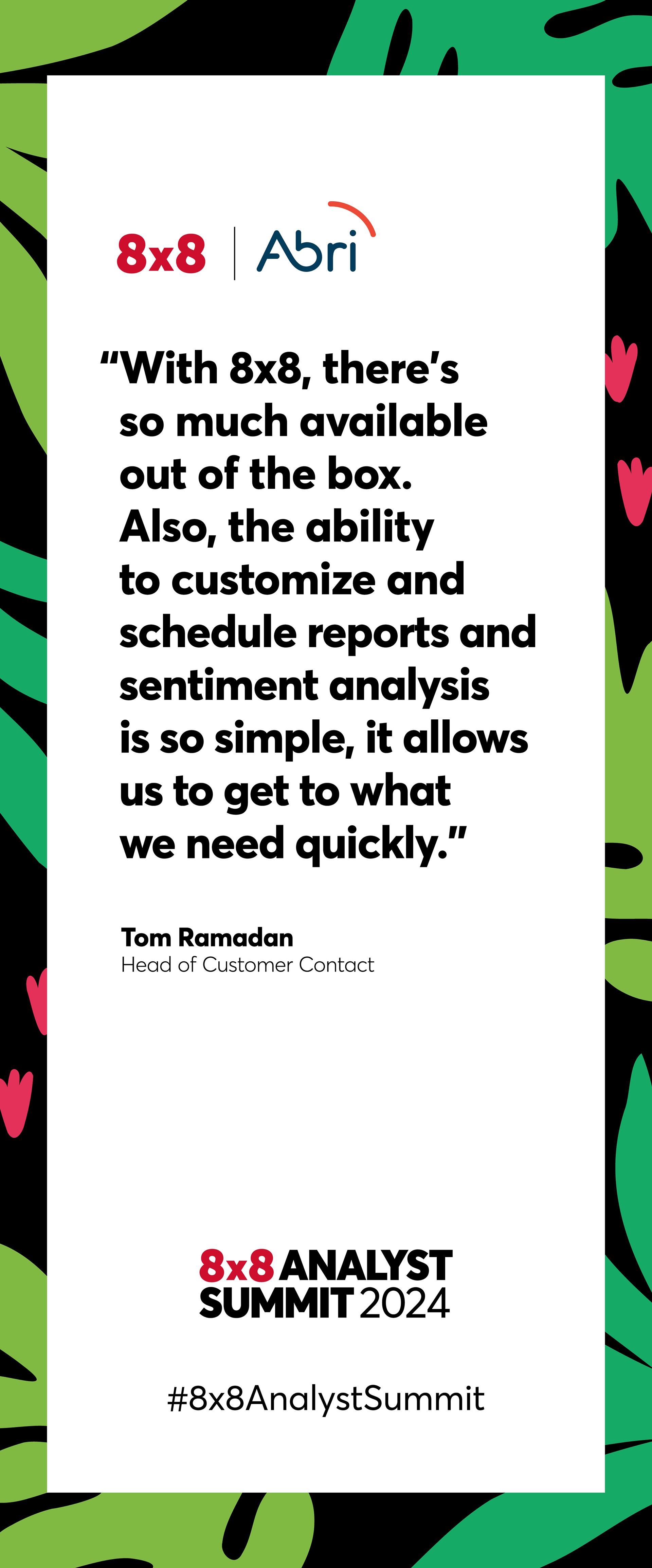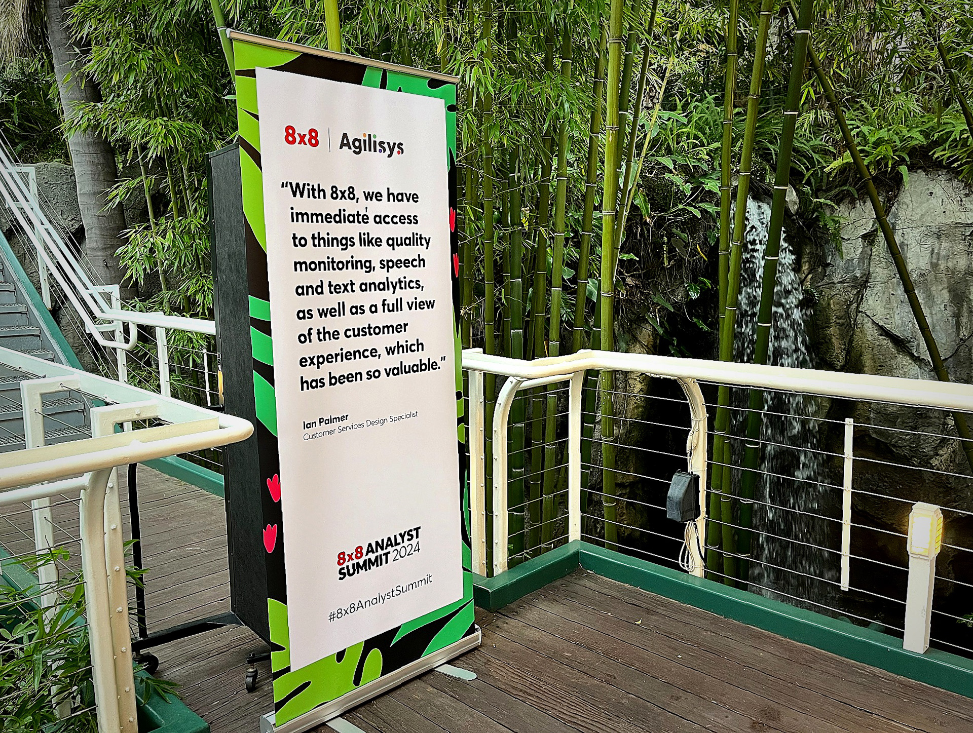 The 8x8 Analyst Summit 2024, held at both the US Grant Hotel and the San Diego Zoo, brought analysts, executives, and customers together for a full day of insights and brand storytelling. I led creative direction, design, and production across both venues, developing the event logo, keynote visuals, presentations, signage, swag, environmental graphics, and animated assets that blended 8x8’s brand with subtle animal-inspired elements. The adaptable visual system performed seamlessly in two very different environments, creating a cohesive, memorable experience that reinforced 8x8’s innovation and customer-first focus.