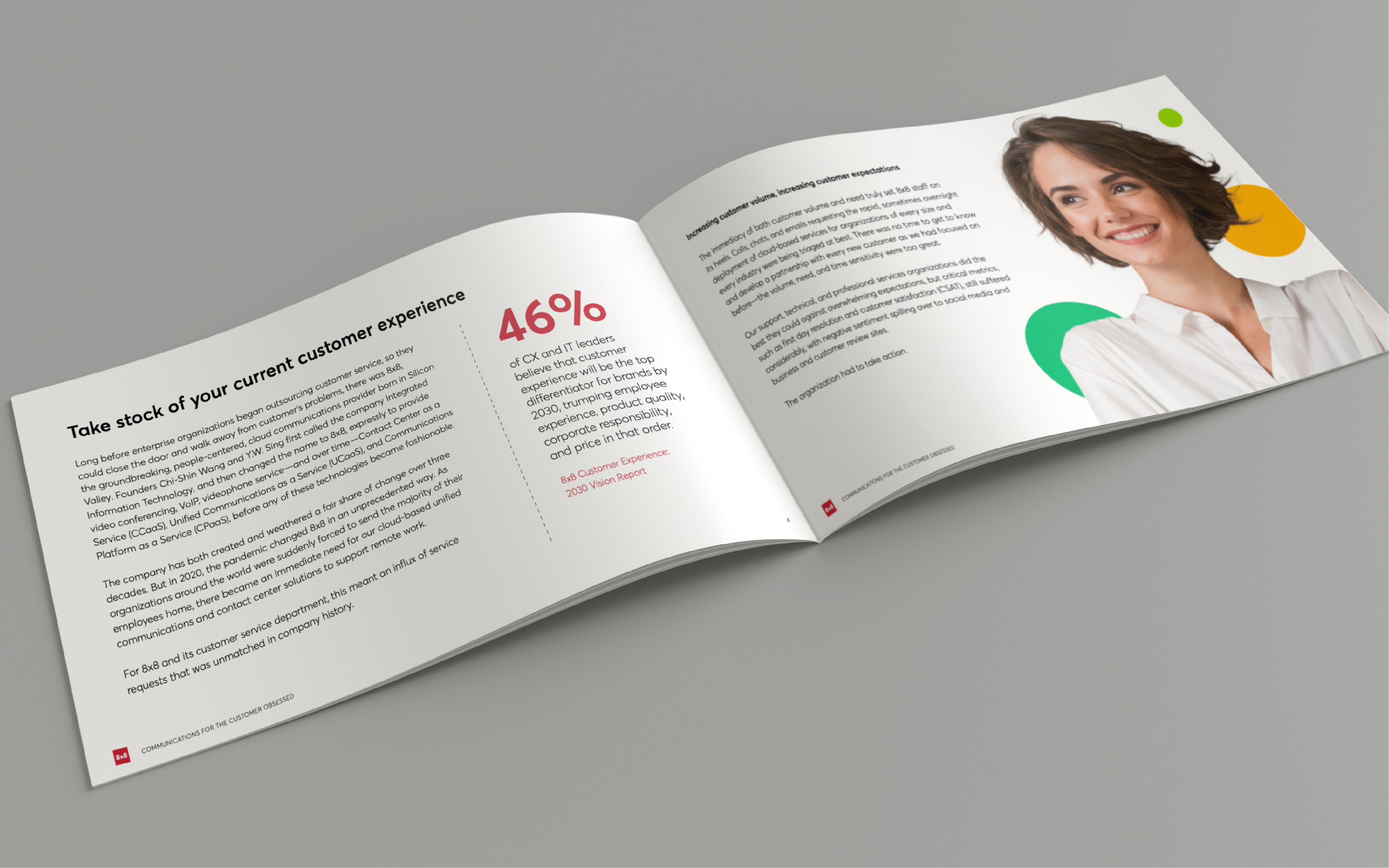 For the “Communications for the customer-obsessed” campaign, 8x8 developed a focused message to highlight the value of its XCaaS platform, first introduced at an Analyst Summit and Nasdaq listing event. As Art Director and Senior Designer, I created the visual language and a cohesive set of assets including printed materials, keynote templates, social graphics, and headshot styling, ensuring a clear and elevated brand experience. The campaign launched with strong visibility, reinforcing 8x8’s customer-first positioning and providing a unified framework for ongoing storytelling across events, digital channels, and corporate communications.