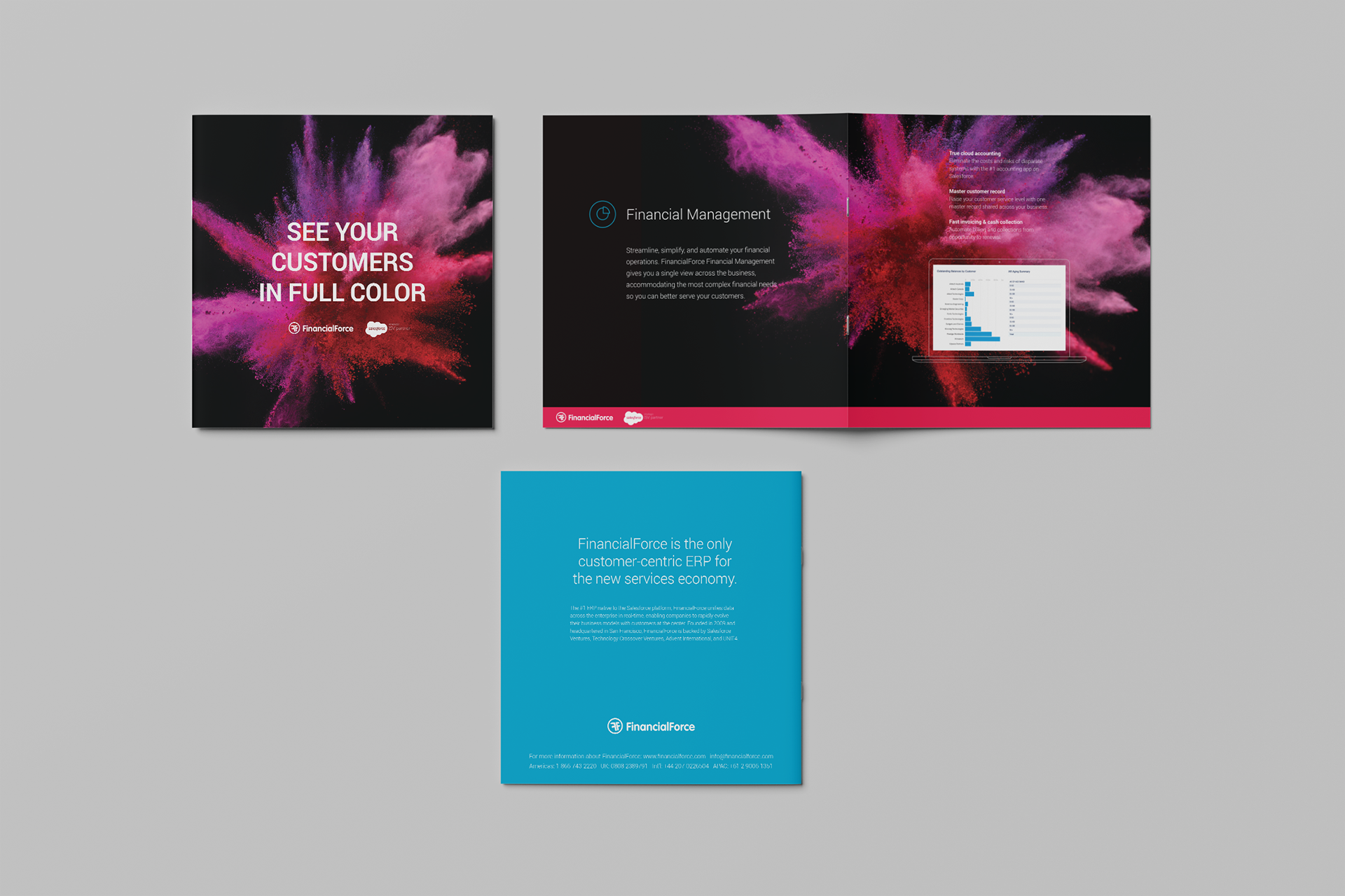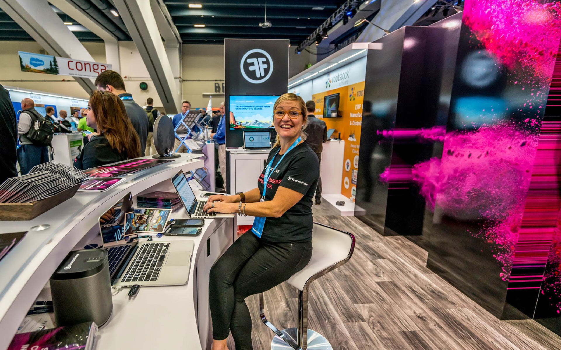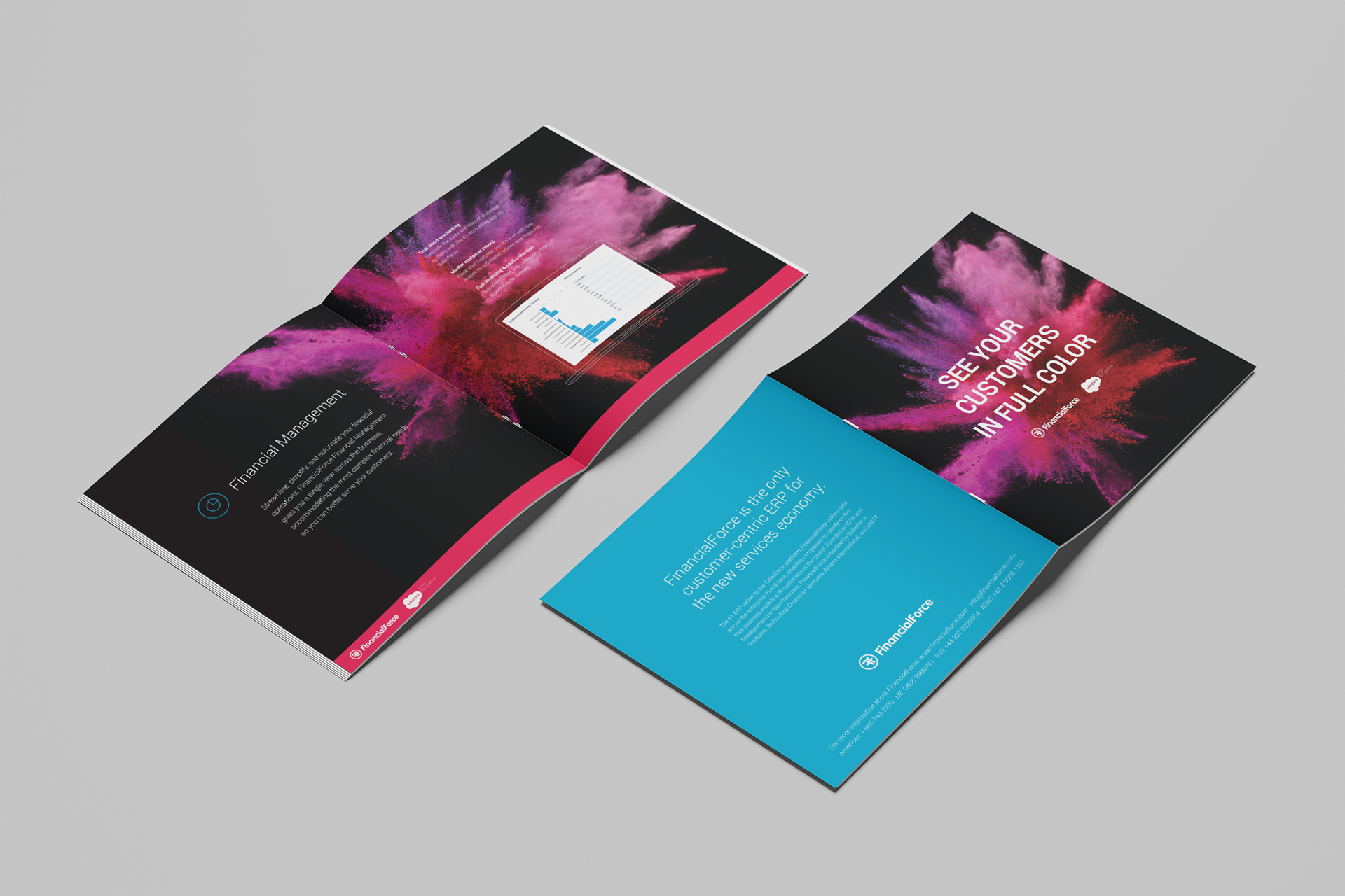 At Dreamforce 2017, FinancialForce created a strong presence through a premium, cohesive branded experience across the expo floor and throughout San Francisco. As Senior Graphic Designer, I developed event signage, presentation templates, menus, table numbers, and other touchpoints that shaped the attendee journey and reflected the brand’s polish and personality. The result was a sophisticated, immersive environment that extended the company’s presence beyond the booth, leaving a lasting impression and reinforcing FinancialForce’s position as a leading cloud ERP on the Salesforce platform.